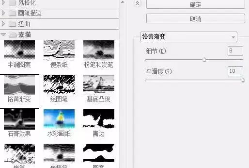 第7步:选择并显示图层1副本3,执行滤镜>素描>铬黄渐变命令,参数如图。