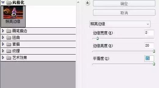 第5步:显示并选择图层1副本2,执行滤镜>风格化>照亮边缘命令,参数如图。
